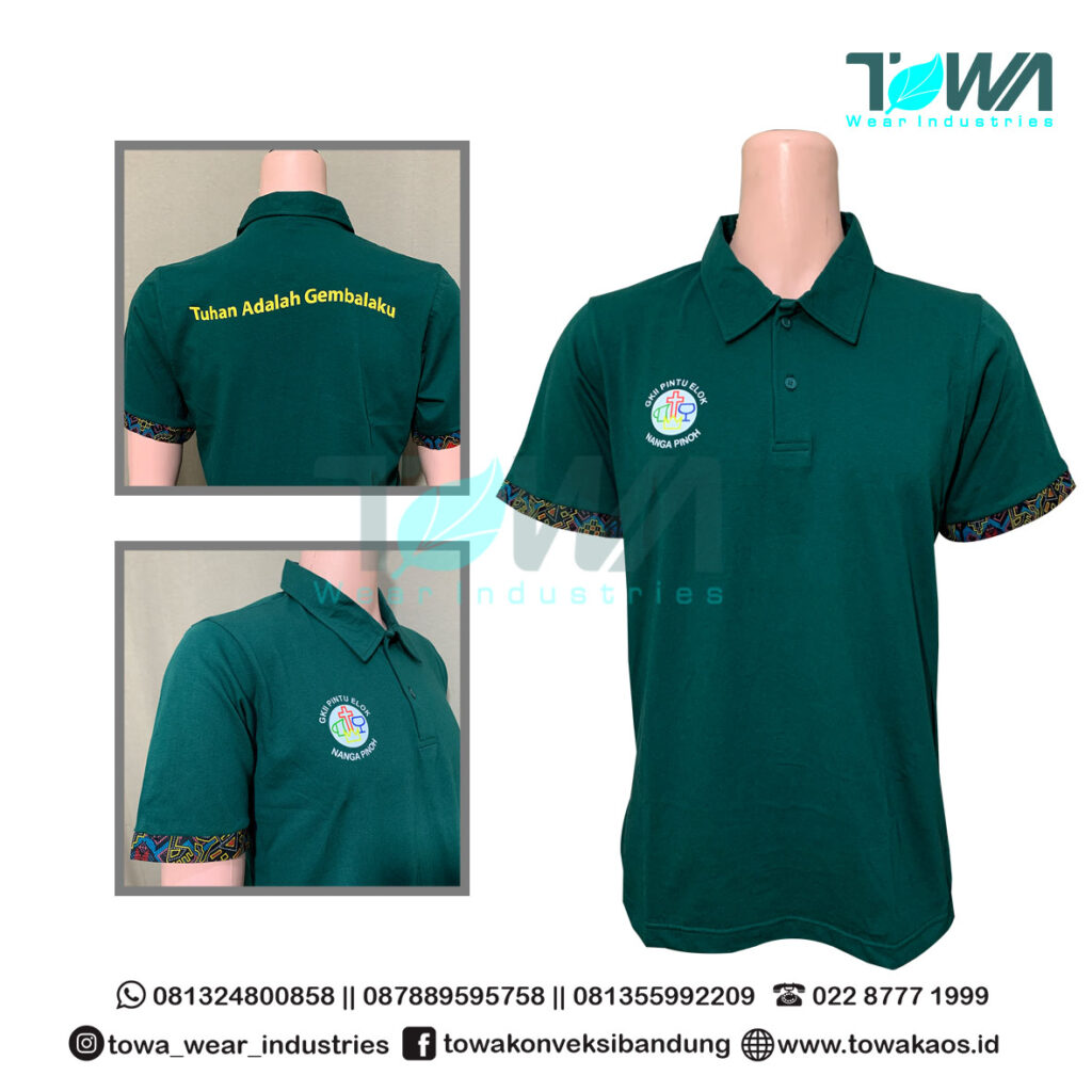 ArtikelBaju Kaos Kerah Poloshirt Lengan Pendek Gereja GKII Pintu Elok Nanga Pinoh Bahan Cotton Combed Katun Hijau Botol Kombinasi Batik Logo Sablon DTF 08 MarBaju Kaos Kerah Poloshirt Lengan Pendek Gereja GKII Pintu Elok Nanga Pinoh Bahan Cotton Combed Katun Hijau Botol Kombinasi Batik Logo Sablon DTF