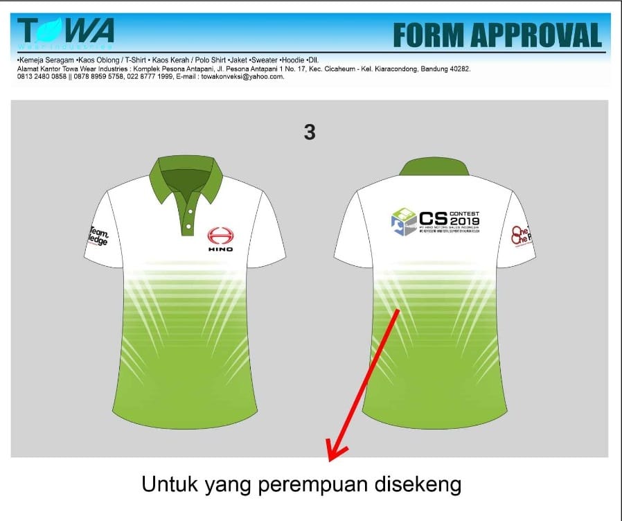 Baju event perusahaan tidak selalu identik dengan kemeja, ada beberapa model yang bisa dijadikan pilihan diantaranya yaitu baju kaos, kaos kerah, reglan, jersey kerah, dll. yang bisa di sesuaikan dengan tema acara. Apabila event yang diselenggarakan semi formal maka baju kaos kerah bisa menajdi pilihan, atau jika santai bisa menggunakan baju kaos oblong dan jika akan membuat event olahraga maka ada baiknya mengenakan baju jersey kerah sehingga membnerikan kesan sporty dan profesional. Seperti orderan terbaru kami dari PT. Hino Motors di Palembang yang memesan baju jersey kerah printing untuk event perusahaannya.