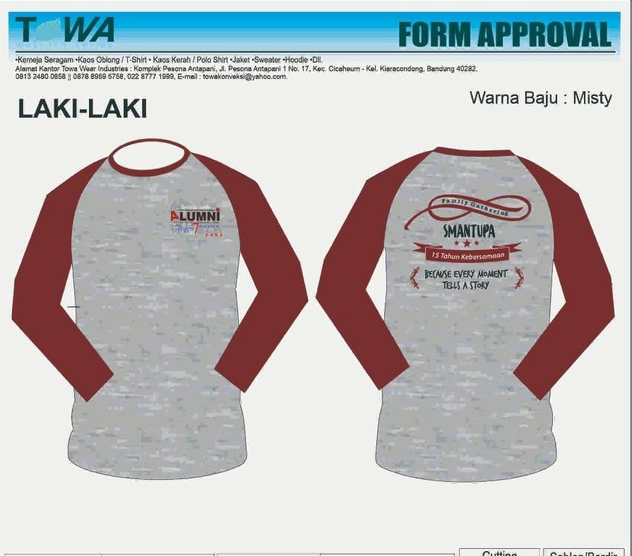 Seperti pesanan baju reuni terbaru kami dari alumni salah satu SMA di Palembang yang menginginkan model baju kaos regaln untuk dikenakan pada saat family gathering.